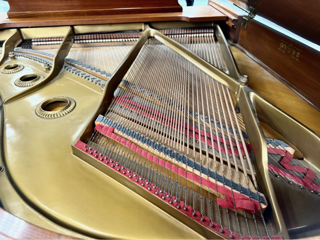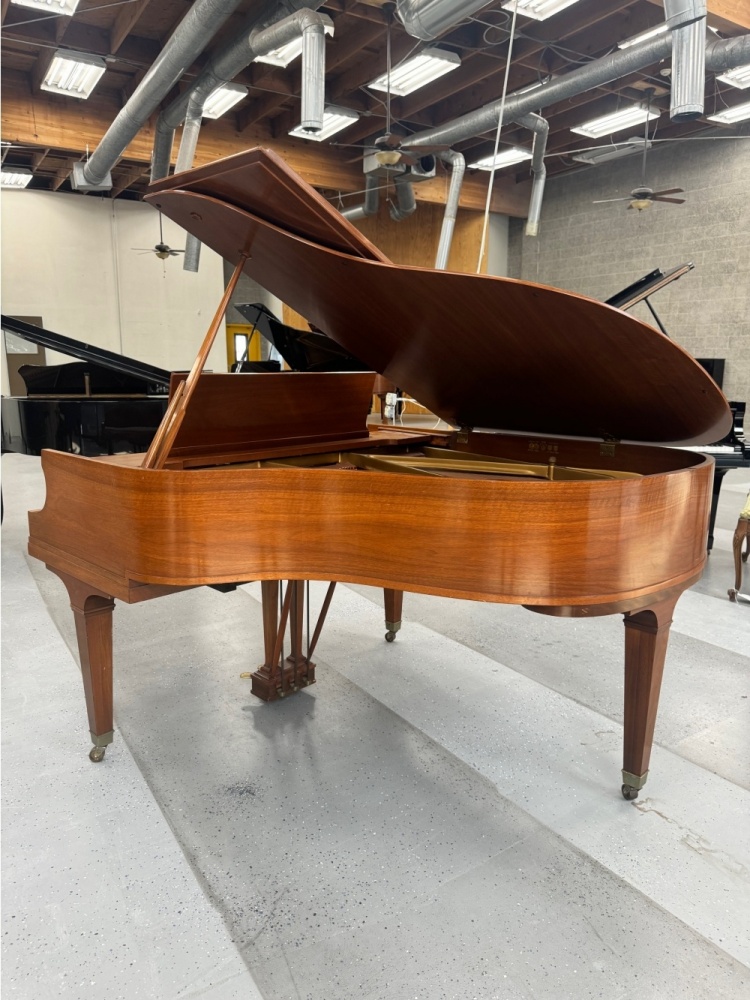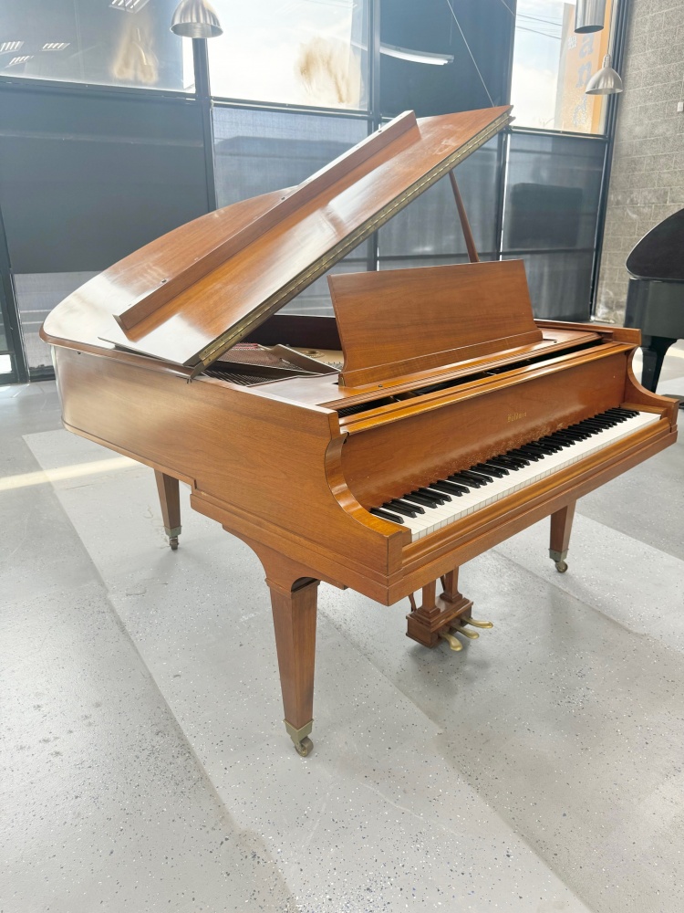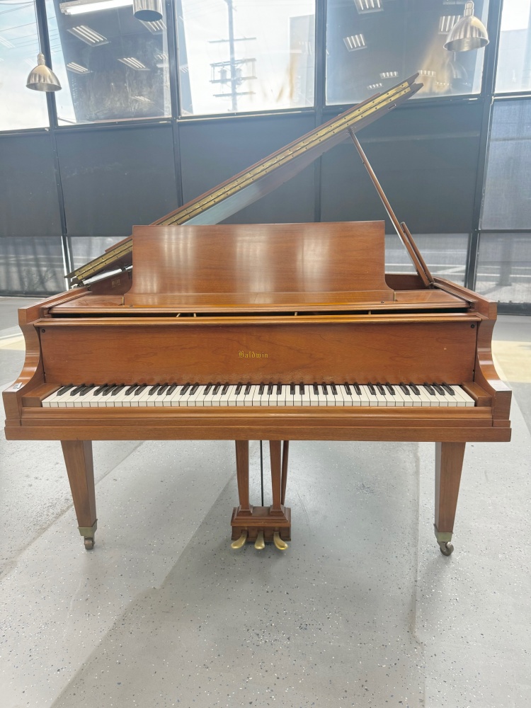 Beautiful Baldwin R Grand Piano. This stunning medium-sized grand piano features a gorgeous satin walnut finish and straight-style legs with brass ferrules. It has an exceptional tone and touch, making full-use of its fuller grand size. This piano is sure to look amazing in your home, so inquire today!