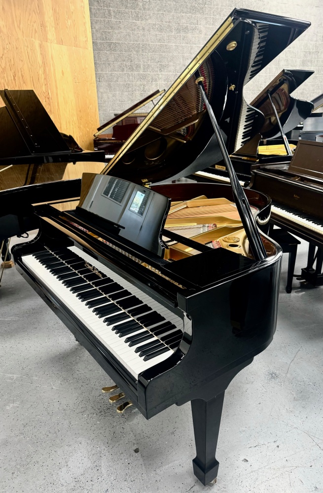 Beautiful Pearl River GP142 Petit Grand Piano. This piano features a lovely polished ebony finish and spade-style legs. The petit grand size is the smallest size of grand piano available, and fits very well in smaller homes and spaces. This piano is sure to look amazing in your space, so inquire about this today!