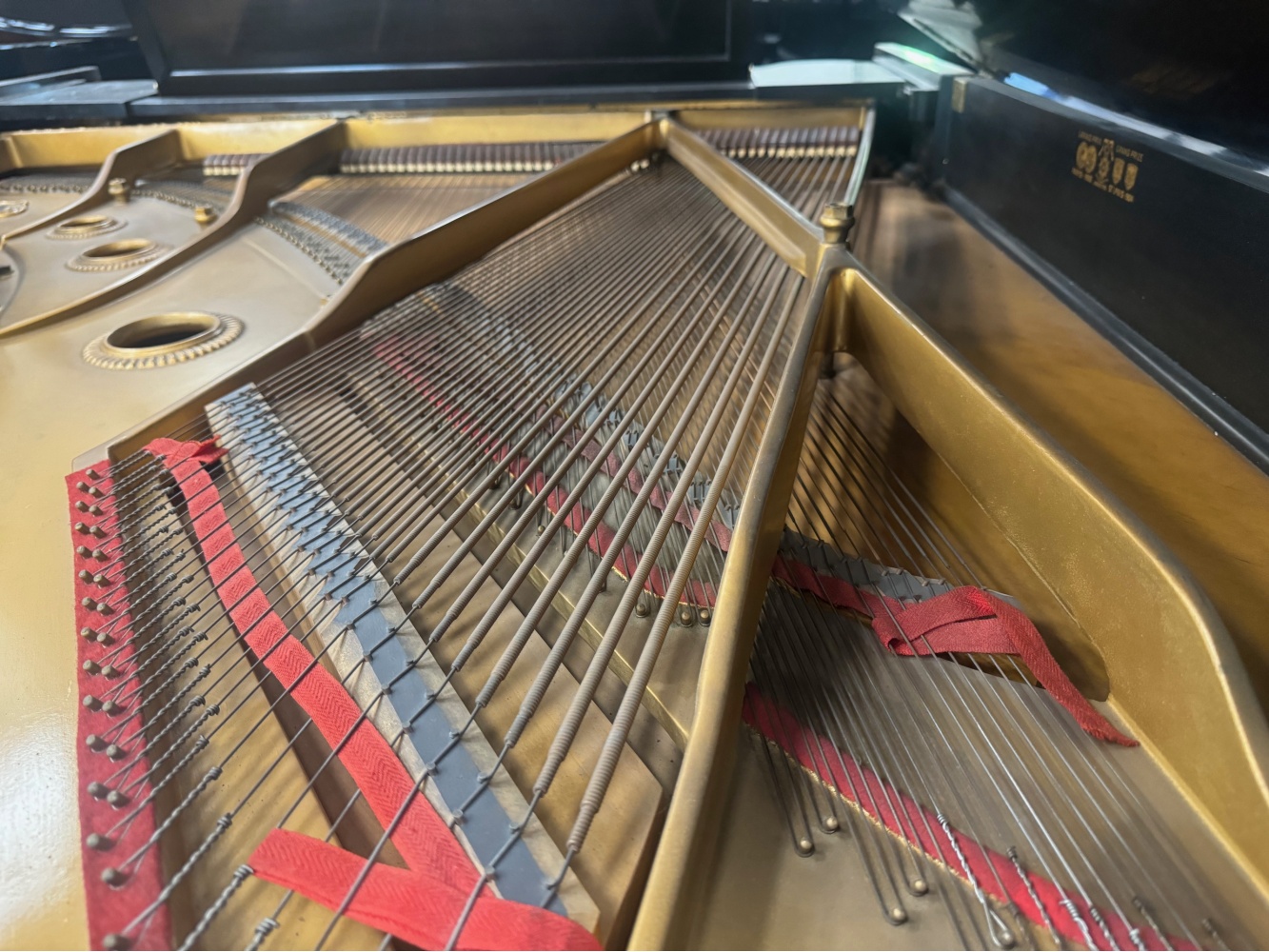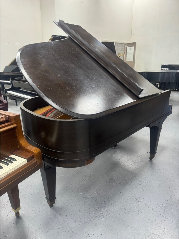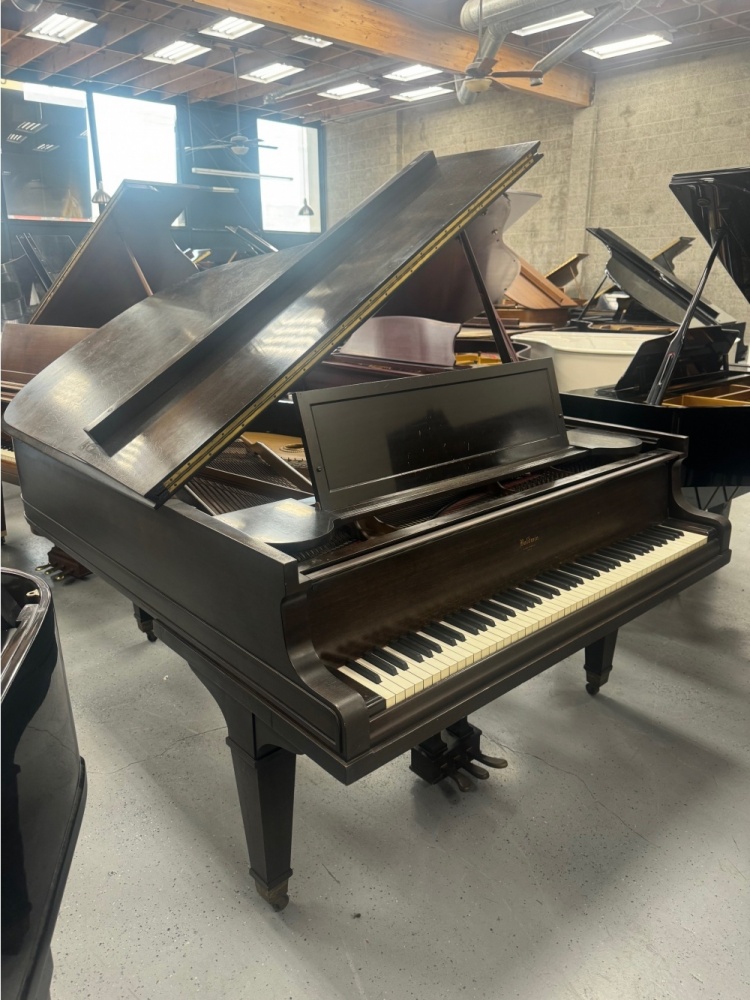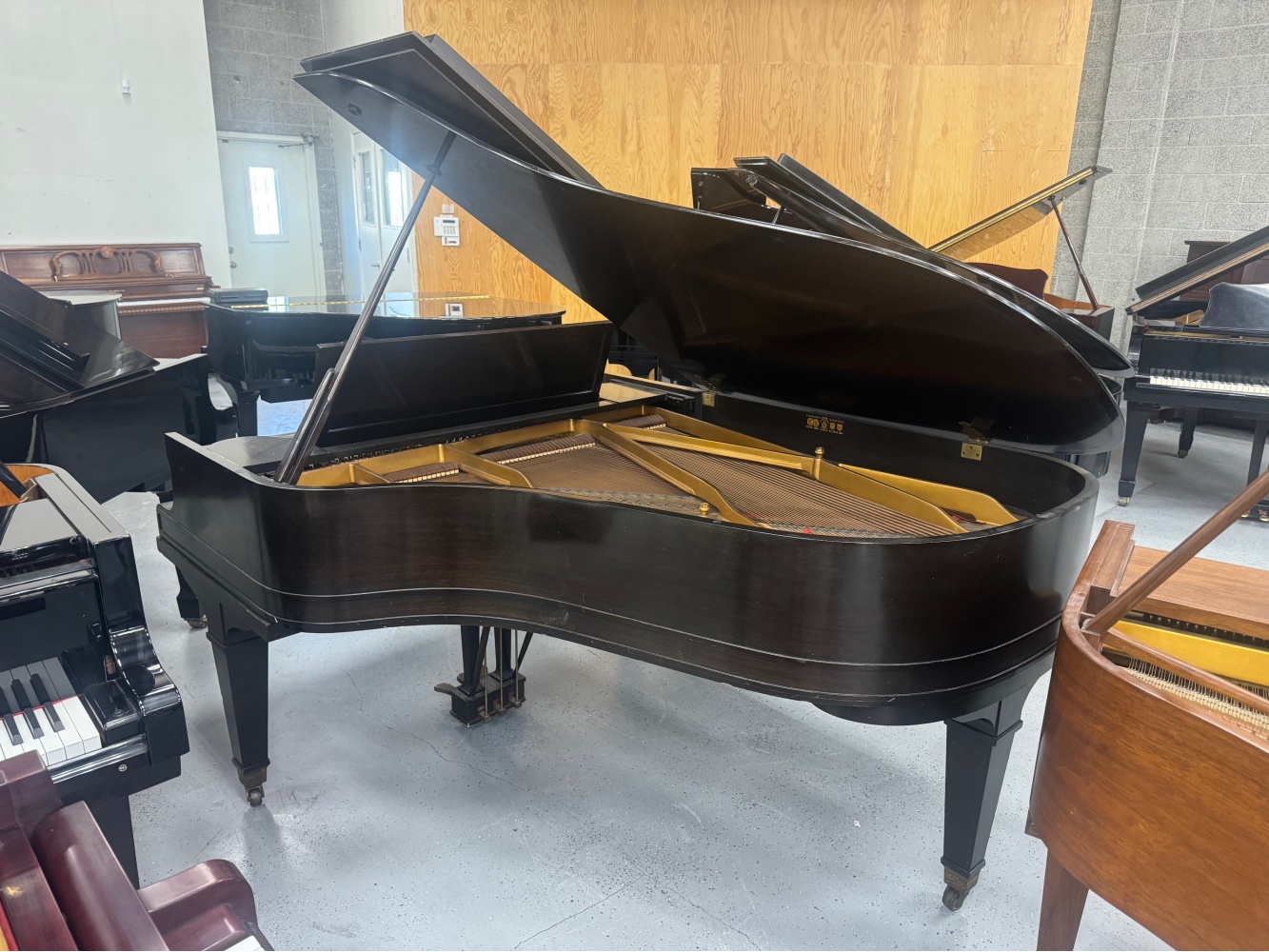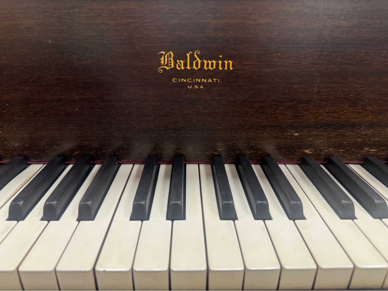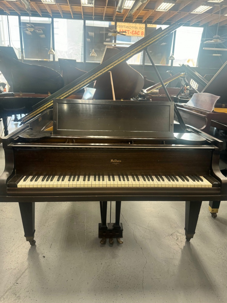 Beautiful Baldwin C Grand Piano. This stunning medium-sized grand piano features a gorgeous satin mahogany finish and straight-style legs with brass ferrules. It has an exceptional tone and touch, making full-use of its fuller grand size. This piano is sure to look amazing in your home, so inquire today!