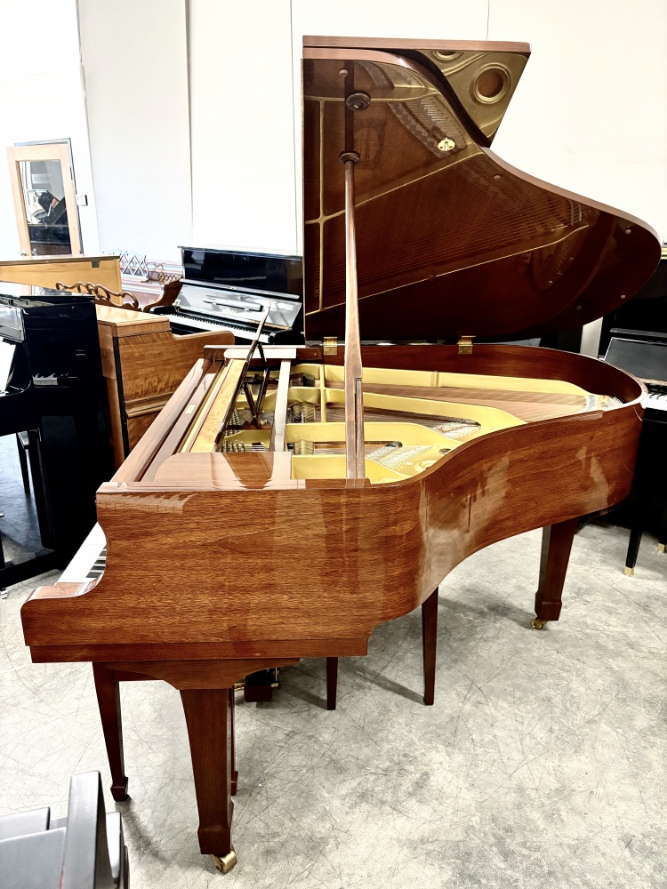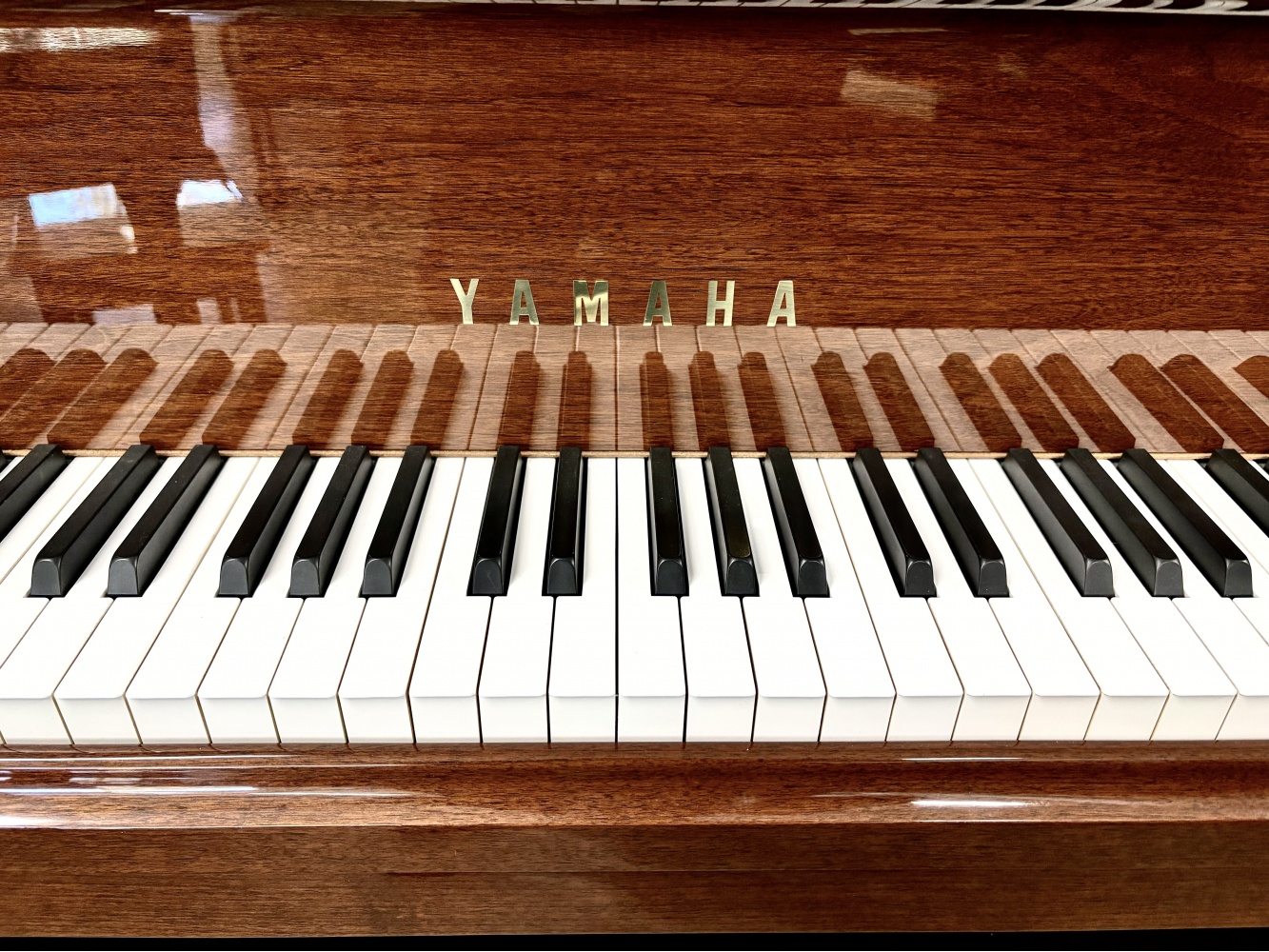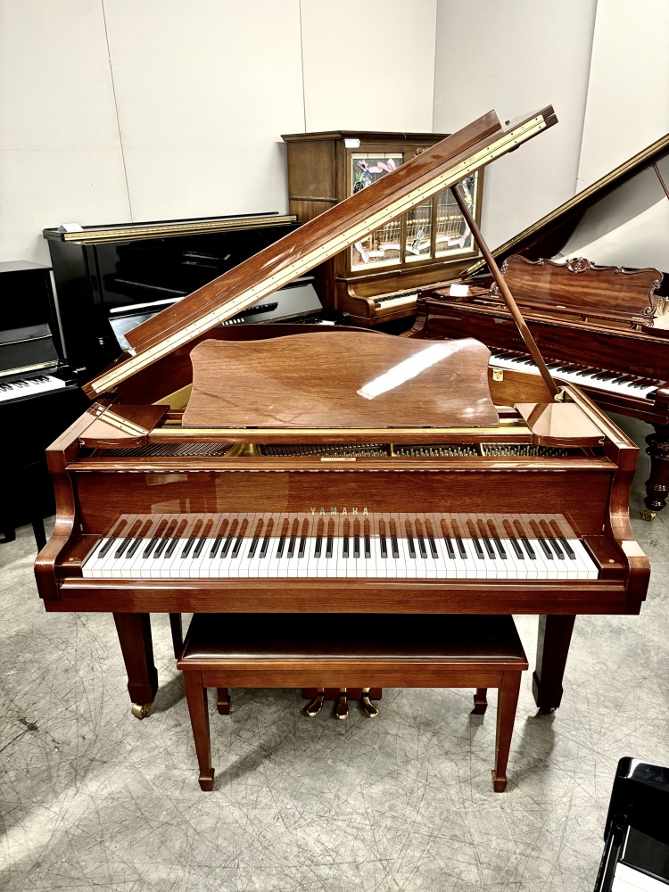 Beautiful Yamaha G1 Baby Grand Piano. This piano features a lovely polished walnut finish and spade-style legs. The baby grand size is the most popular size of grand piano among homeowners for its compact size and rich sound. This piano is sure to look amazing in your space, so inquire about this today!
