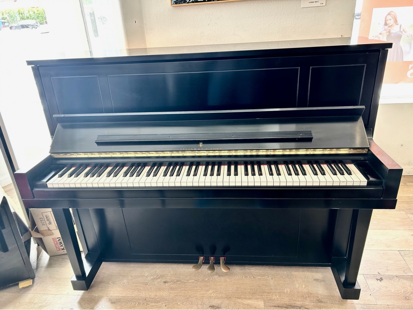 Steinway, 1098 Ebony satin finish all original from 1984 with rare Sostinuto pedal. Excellent condition, very little use, responsive action, and exquisite tone.