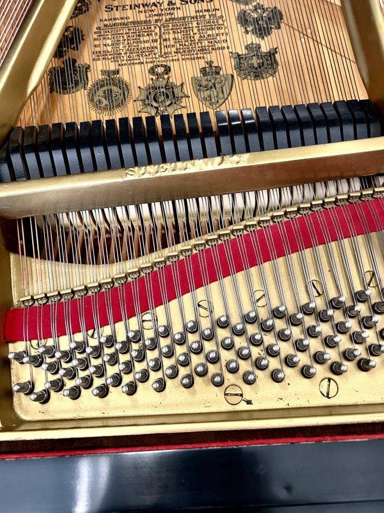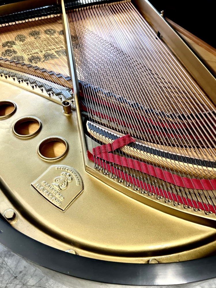 The Steinway Model M is a 5'7" (170 cm) medium grand piano, also known as a studio grand. It is known for its rich tone, responsive action, and manageable size, making it suitable for conservatories and homes. This particular one was used in Kendrick Lamar‘s Humble.