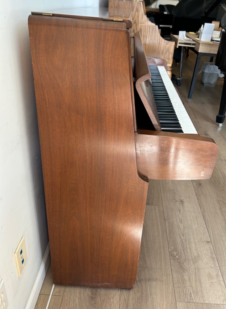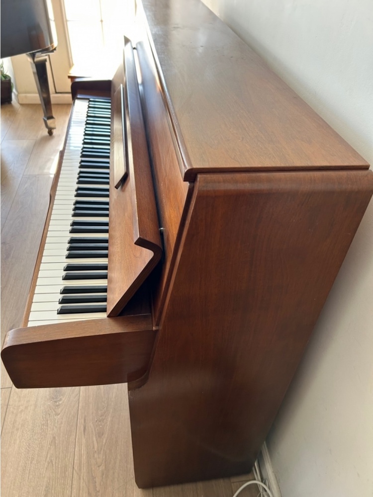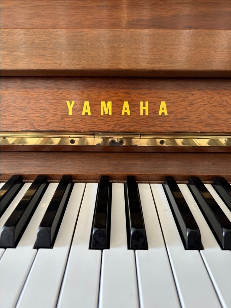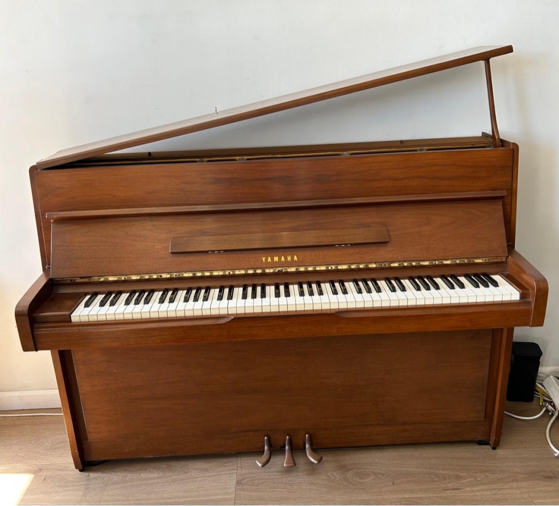The Yamaha M1 satin walnut piano is a compact "continental console" upright piano known for its sleek, modern design and warm, rich sound. It features a satin-finished walnut cabinet, a grand piano-style top lid that opens to direct sound, and a responsive action. It is often considered a high-quality, reliable choice for home use or studio work, suitable for both beginners and more experienced players.