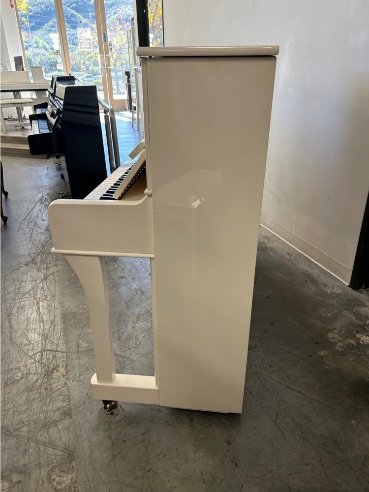 The Falcone UF–20T is a beautiful Polished Ivory Upright Piano. Has a fine rich and colorful tone to it. Good for beginners and intermediate. Inquire today!!