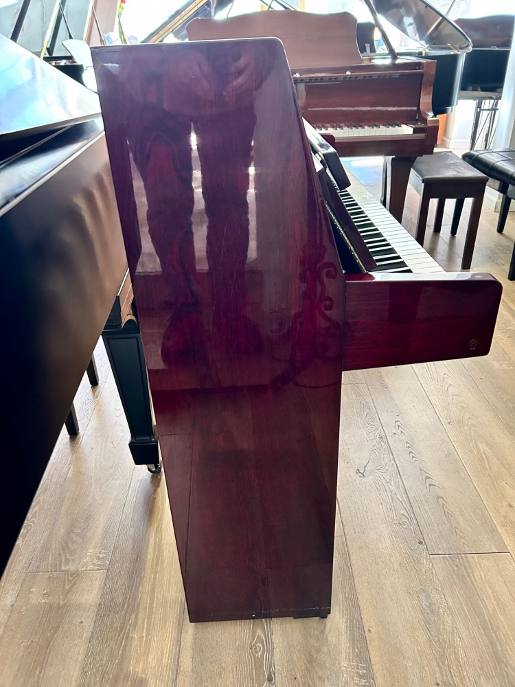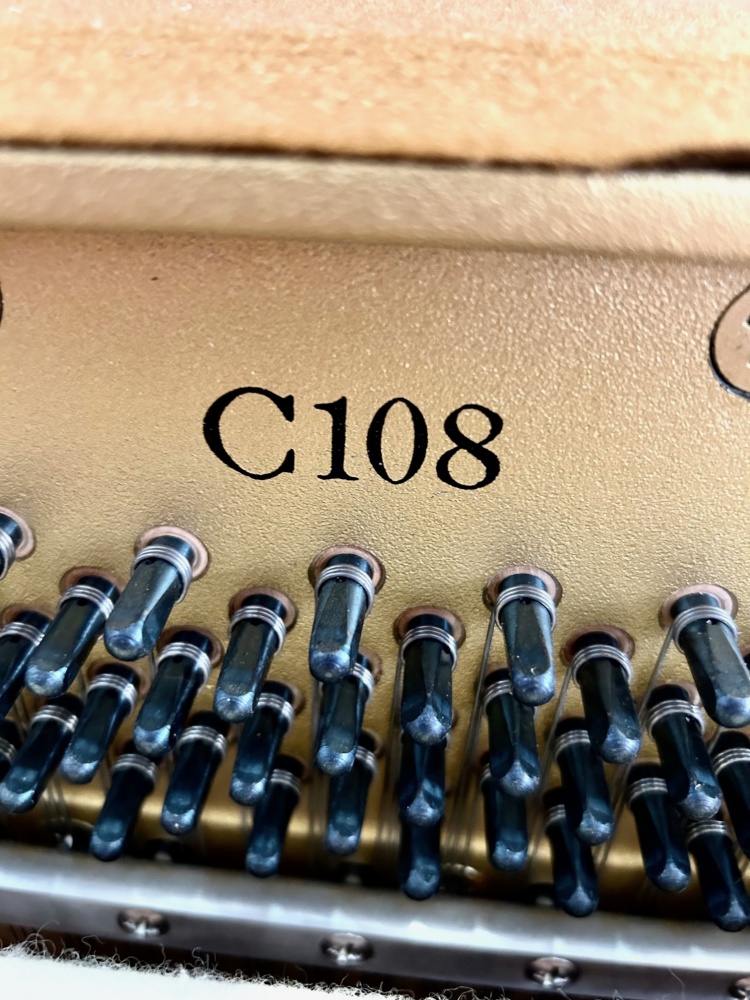 The Yamaha C108 is a Console-sized, Japanese-made upright piano known for its compact design, warm tone, and responsive action. It features a solid spruce soundboard and durable construction, making it ideal for students, teachers, and professionals, and it often comes with a middle practice pedal for quiet play. While older models may show wear, the C108 was built with Yamaha's precision engineering and is valued for its excellent performance and value.