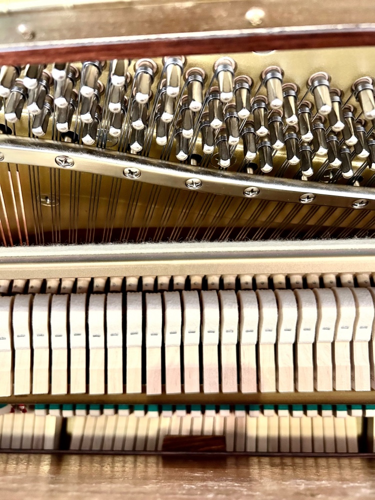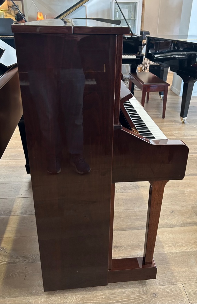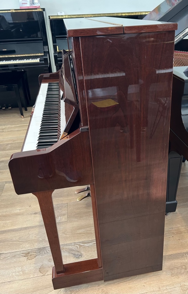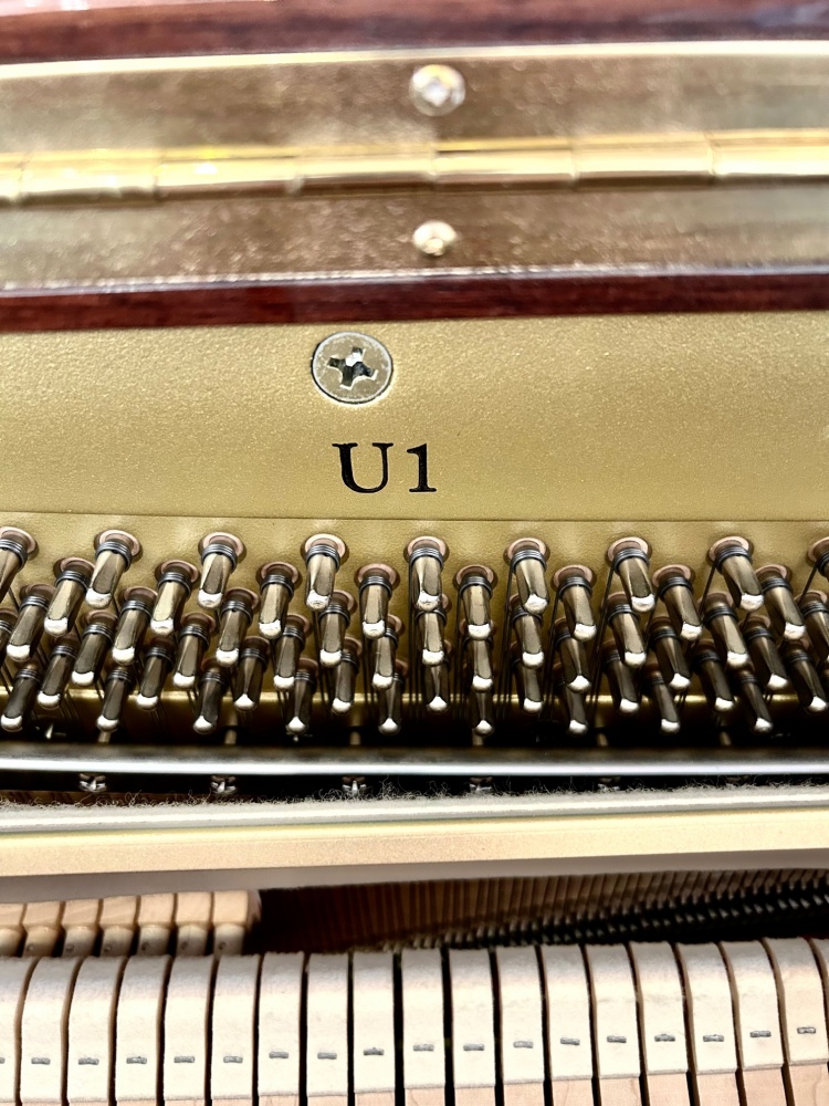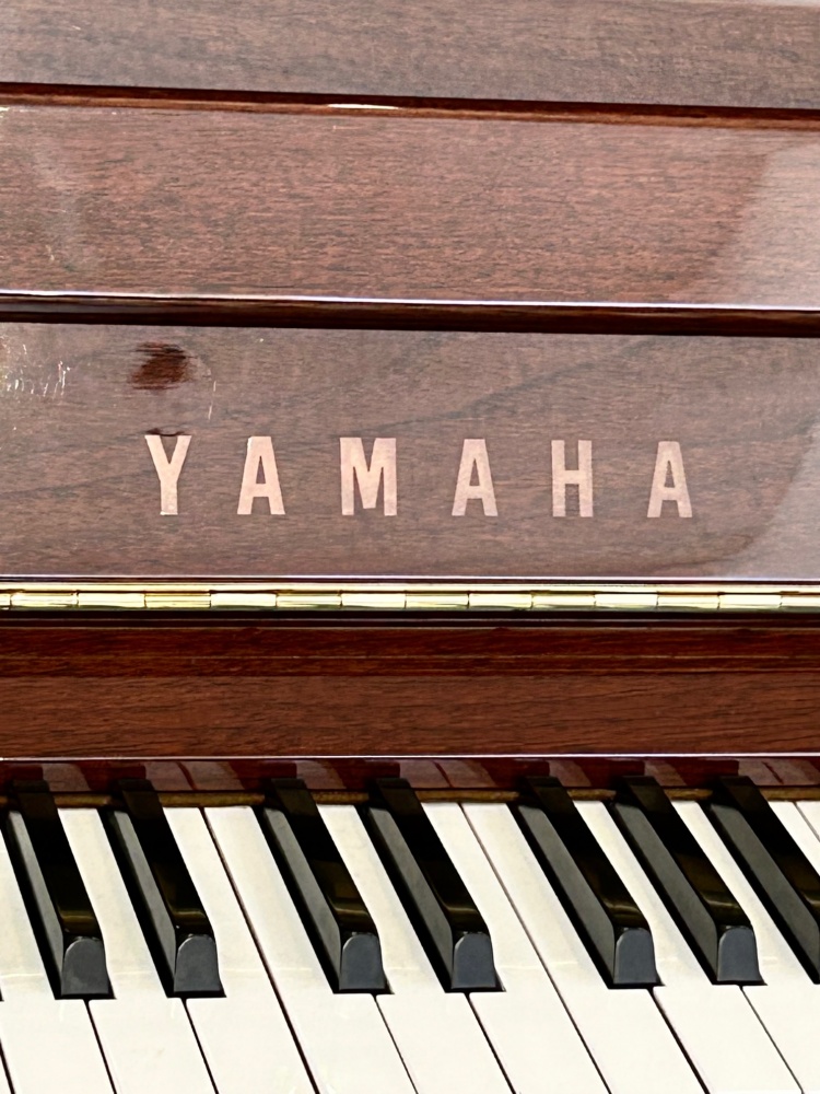 This Yamaha U1 in polished walnut is a popular, high-quality upright piano known for its rich, balanced tone, responsive touch, and elegant, warm-looking finish. This model features the reliability and craftsmanship of the standard U1, but with a distinctive, factory-finished walnut cabinet that is visually more refined than a standard ebony finish. Key features include a soft-close fallboard and construction details like a solid spruce soundboard and V-Pro plate, making it ideal for both home and teaching environments.