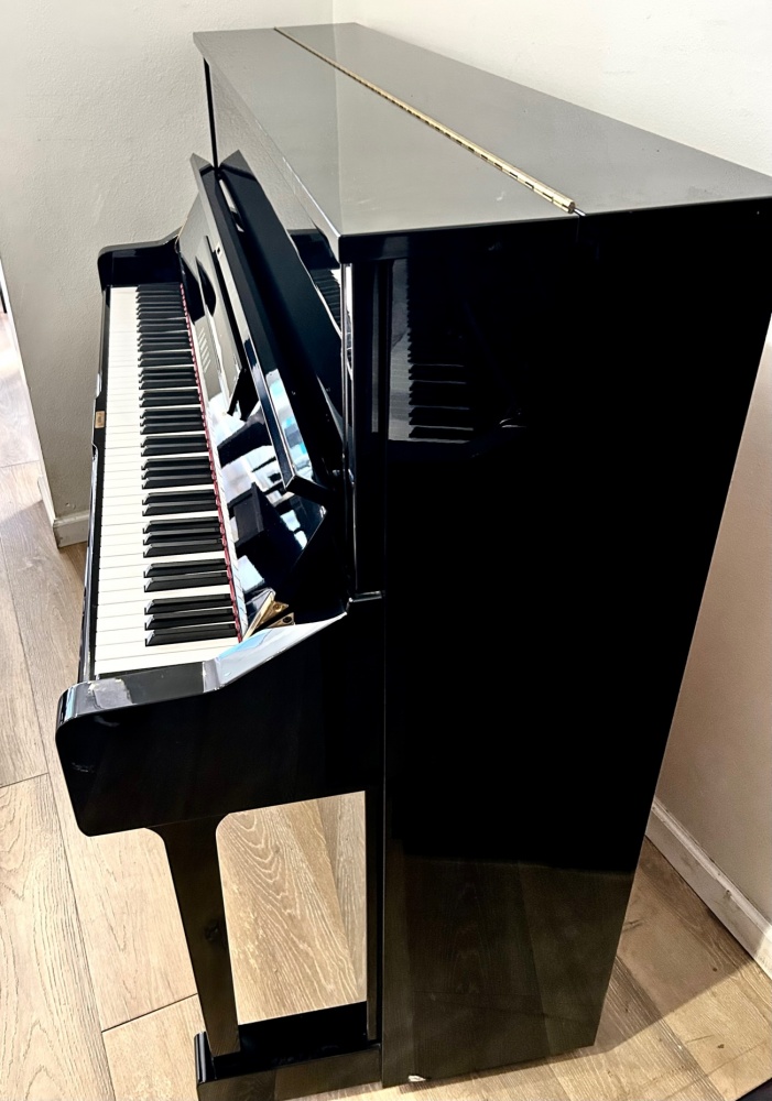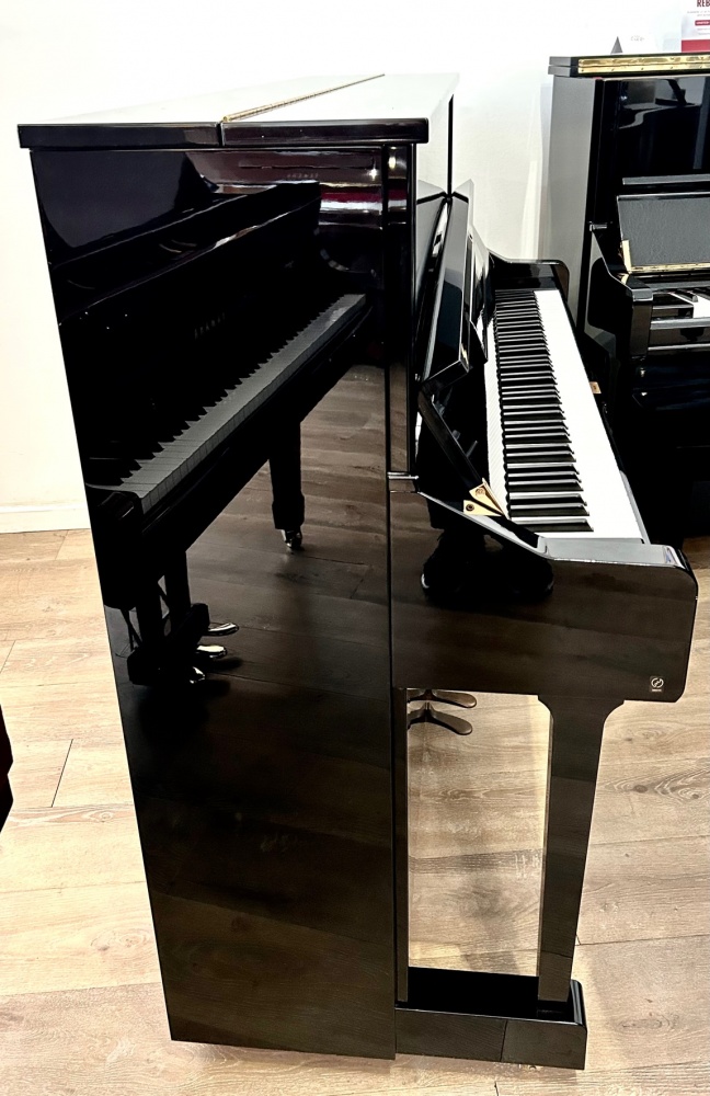 This beautiful Yamaha U1 in Polished Ebony is a popular, 48-inch upright piano known for its high-quality craftsmanship, professional-grade sound, and elegant, durable finish. It features a seasoned spruce soundboard, a V-Pro frame, and a soft-close fallboard, making it a reliable and beautiful instrument suitable for homes, studios, or churches. The polished ebony finish gives it a classic, high-gloss look.