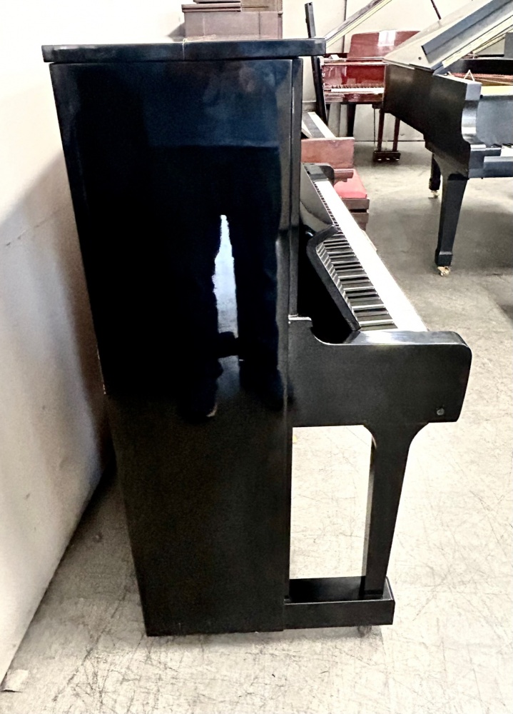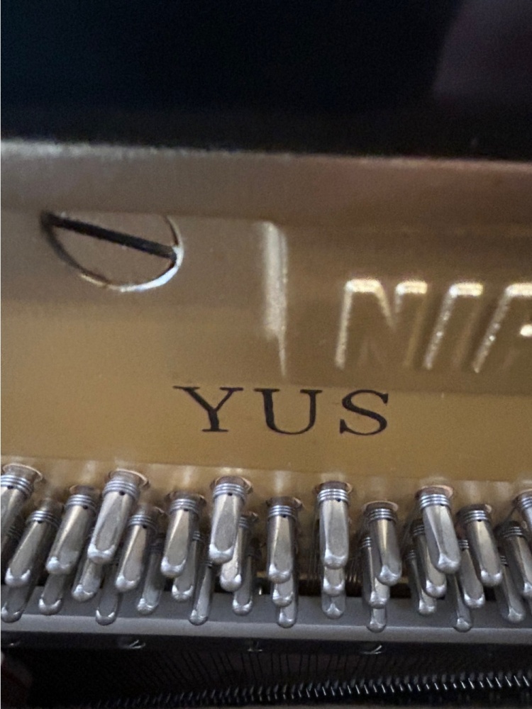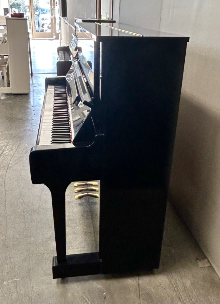 The Yamaha YUS Polished Ebony is a professional-grade upright piano with a classic, high-gloss black finish that reflects light beautifully, matching its premium craftsmanship, featuring a resonant spruce soundboard, hand-wound bass strings, CFX hammer felt, Ivorite/Phenolic resin keytops, and a stable aluminum action rail for a responsive touch and grand-piano-like tone, ideal for serious pianists.